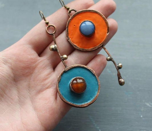 Asymmetric Ancient Bronze Metal Painting Drop Earrings