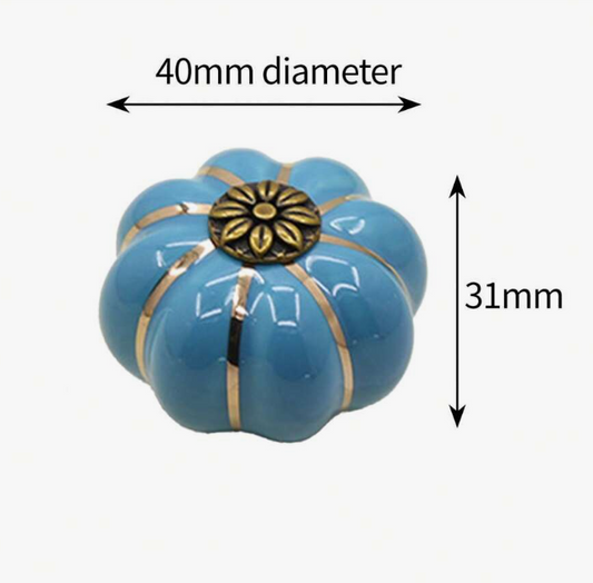6pcs Pumpkin Shaped Ceramic Pull Handle, Stainless Steel & Wood Cabinet/Drawer Knobs, Rustic Style