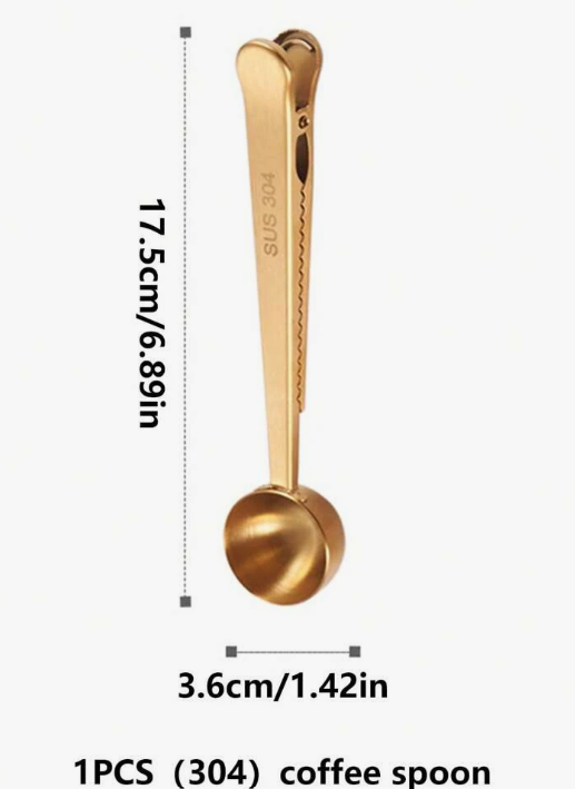 2-In-1 Stainless Steel Coffee Spoon Clip. This versatile tool acts as a coffee spoon and sealing clip, ensuring your coffee stays fresh and flavorful. Made from durable stainless steel, it's perfect for measuring and sealing all types of ingredients.